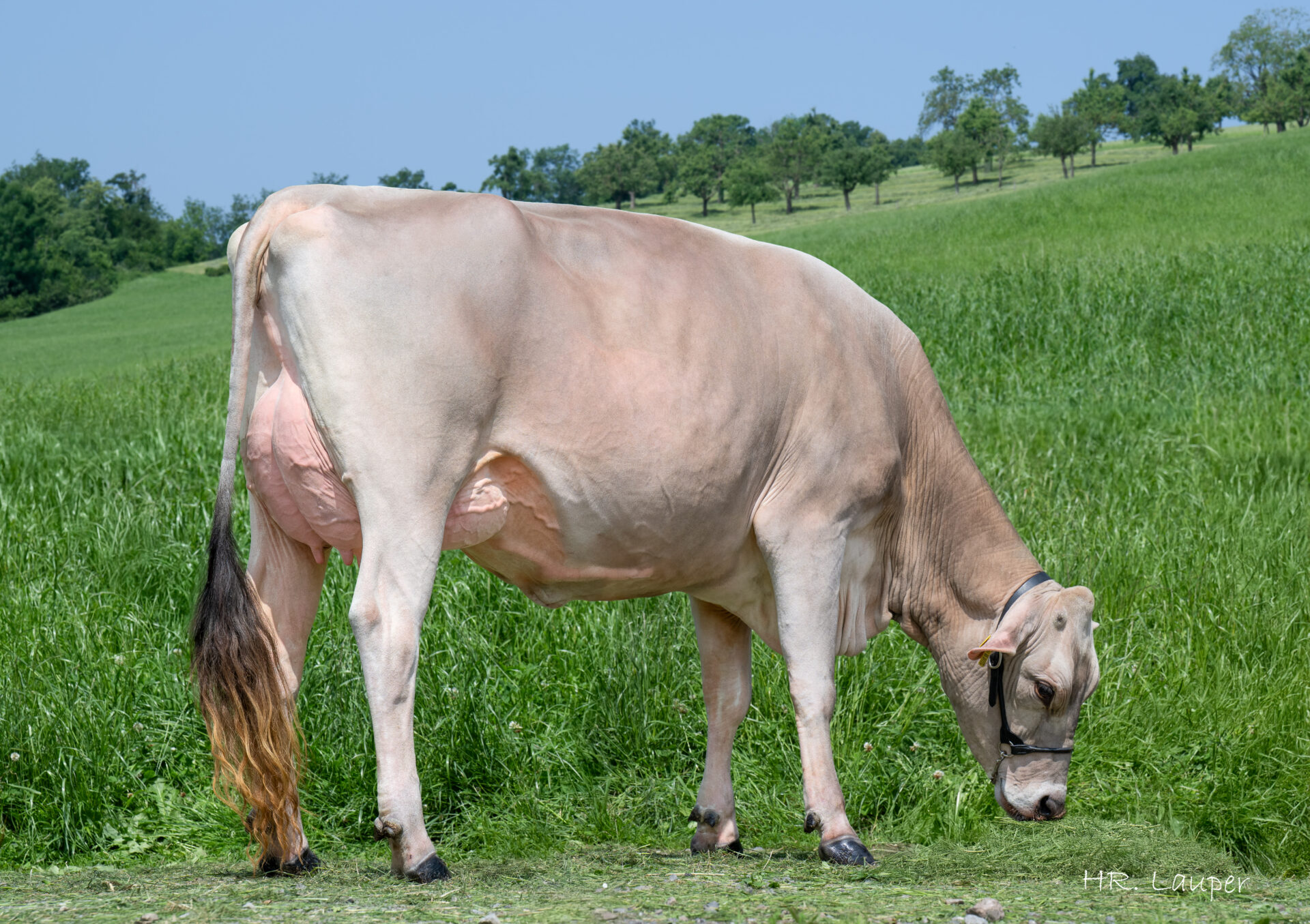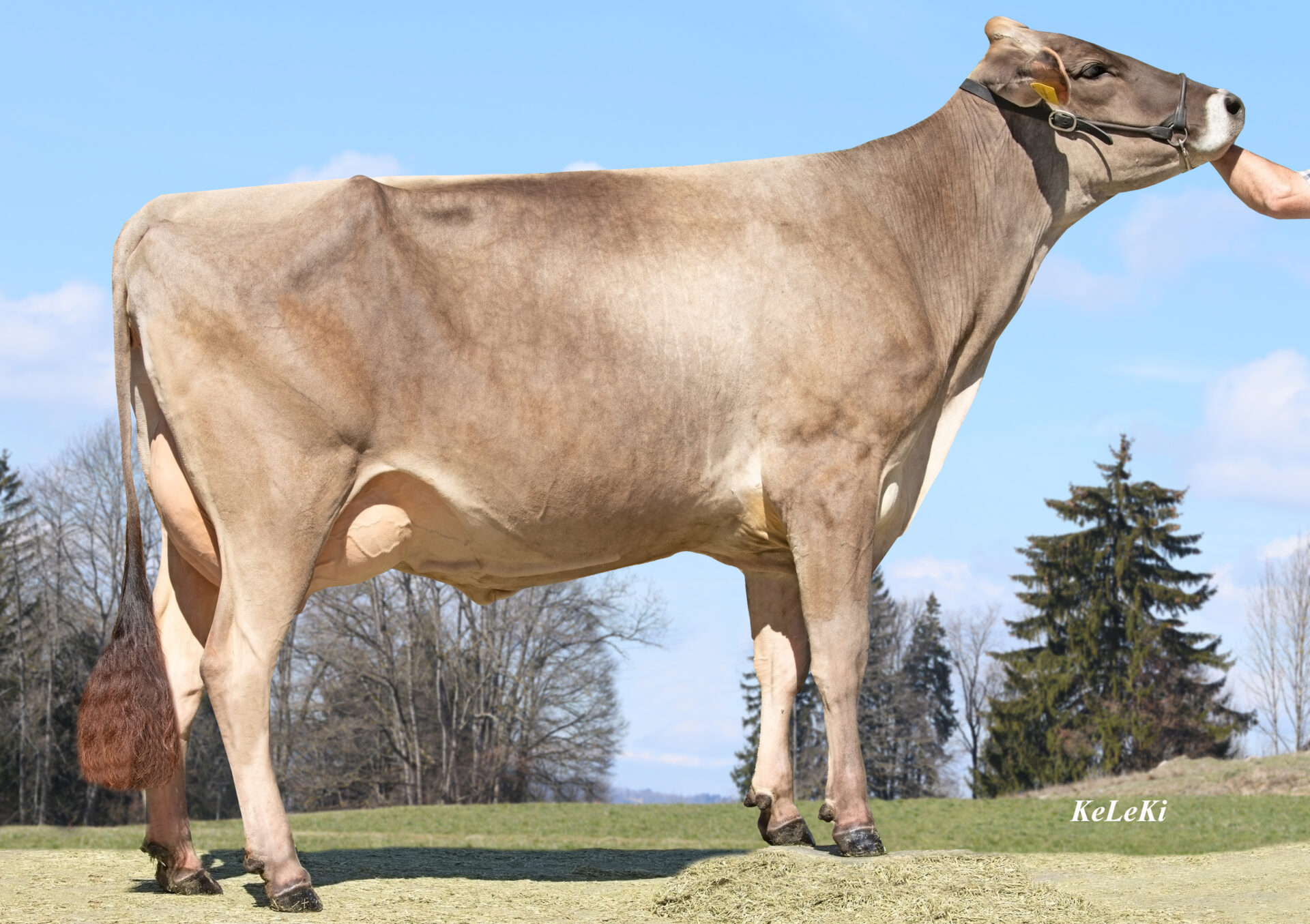 Le figlie di grandezza media con una buona linea dorsale e posizione del bacino, nonché arti ben angolati ed eccellenti mammelle completano la buona trasmissione morfologica. Durante gli accoppiamenti occorre prestare attenzione al temperamento, al contenuto di grasso e all’espressione del garretto.